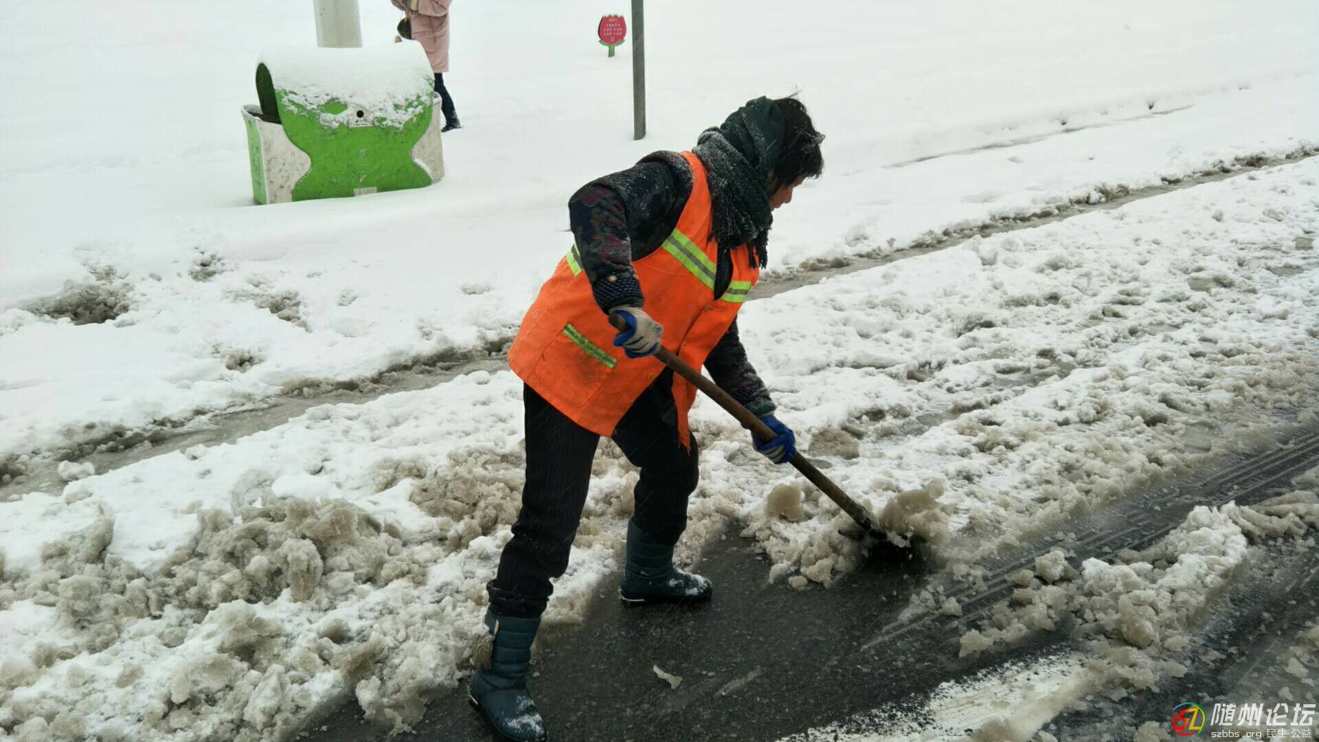 正文摘要:隨州論壇訊 1月5號(hào)早上6點(diǎn),600余名環(huán)衛(wèi)工人已經(jīng)到崗開(kāi)始作業(yè),覆蓋冰雪的街道上,身穿橘紅色馬夾的環(huán)衛(wèi)工人分外耀眼,他們手持鐵鍬,用力鏟除路旁冰雪。 64歲的王素珍是負(fù)責(zé)迎賓大道 ... |