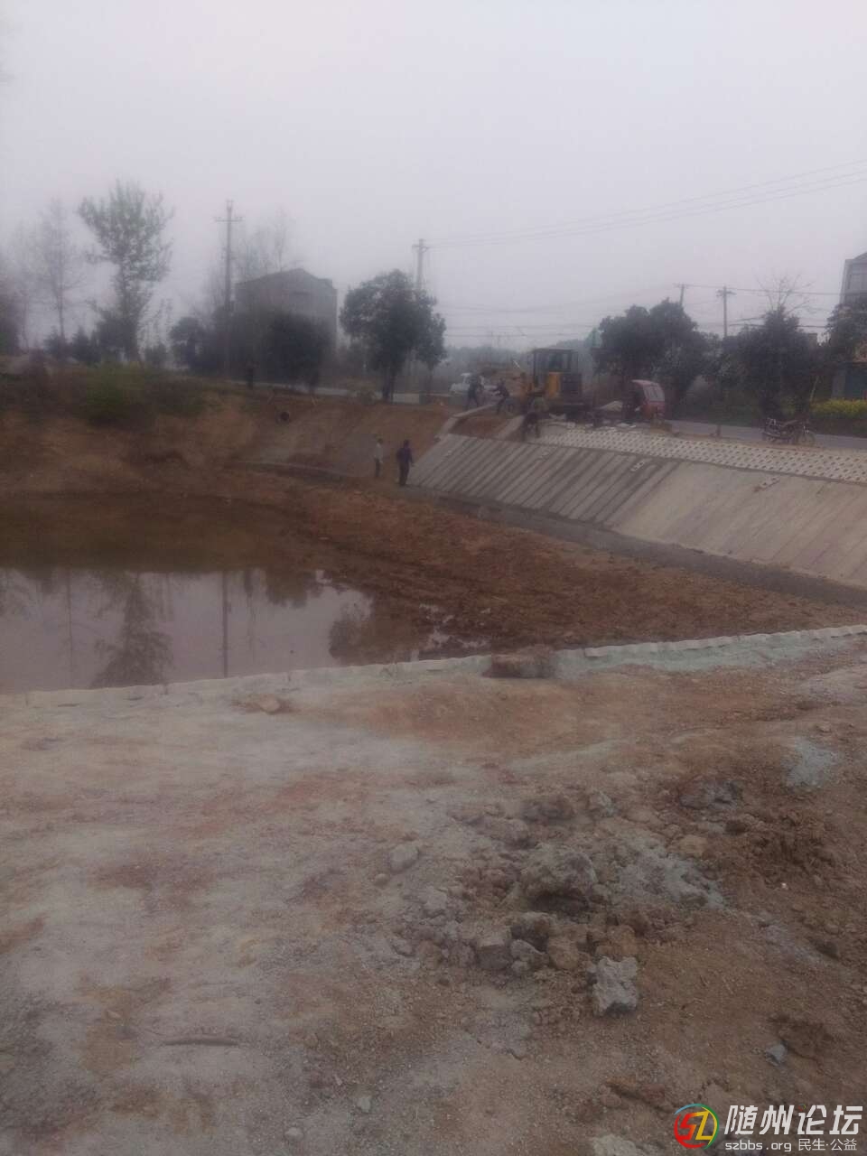 3月28日上午,廣水市長嶺鎮(zhèn)鑼鼓田村“316”國道邊,一塘堰正在鋪設(shè)水泥板,加貼空心花磚加固,圖為施工人員正在現(xiàn)場施工時情景。