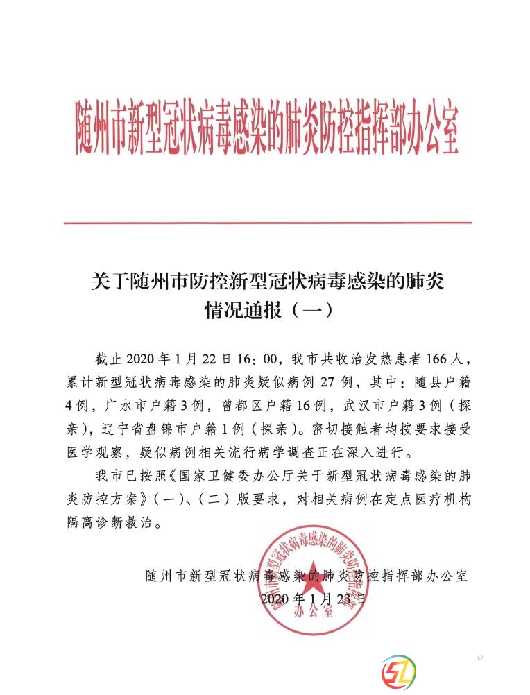 關(guān)于隨州市防控新型冠狀病毒感染的肺炎情況通報(bào)(一) & J V4 c8 K! D( v& M6 ~ ' {/ N3 N( m% A3 _% C
