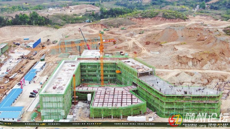 編鐘學校初中部教學樓主體施工緊鑼密鼓,預計4月底封頂。圖為4月6日施工場面。(隨州日報全媒記者徐斌攝)