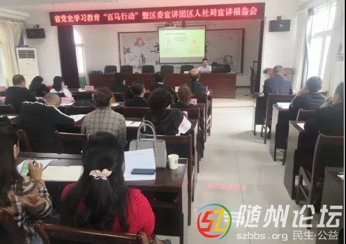 隨州論壇訊 (通訊員閤浩 張輝) 為深入推進(jìn)黨史學(xué)習(xí)教育,引導(dǎo)黨員干部學(xué)史明理、學(xué)史增信、學(xué)史崇德、學(xué)史力行,5月18日上午,省黨史學(xué)習(xí)教育“百馬行動(dòng)”暨區(qū)委宣講團(tuán)蒞臨區(qū)人社局開(kāi)展 ...
