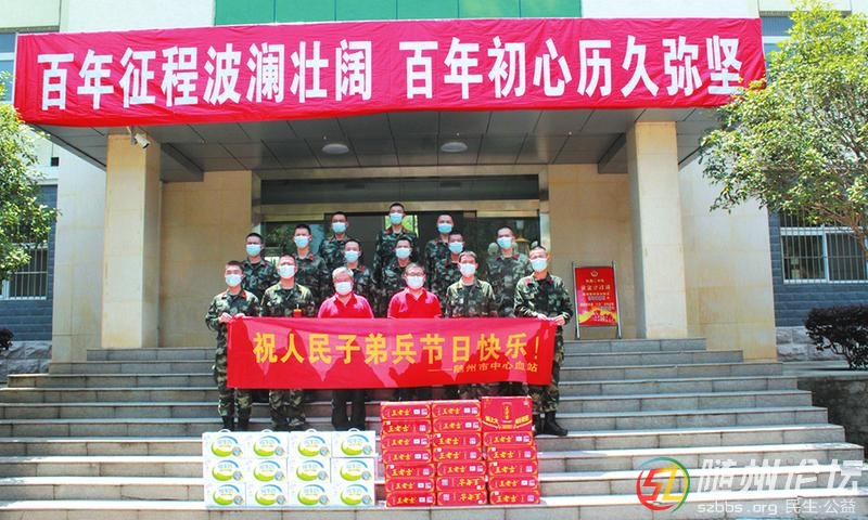 近日,隨州市中心血站帶著價(jià)值萬(wàn)元的盛夏解渴飲品,分別到隨州消防支隊(duì)、武警隨州支隊(duì)、駐隨空軍雷達(dá)部隊(duì),向部隊(duì)官兵送上節(jié)日的問(wèn)候和美好祝福,對(duì)他們長(zhǎng)期以來(lái)給予無(wú)償獻(xiàn)血工作的大力支持表示崇高的敬意和 ...
