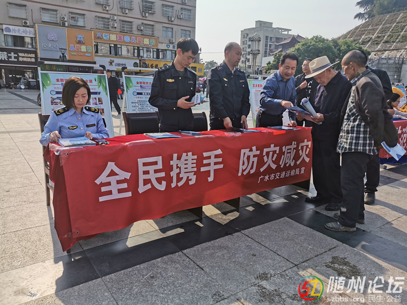 隨州論壇訊(通訊員:張志)今年5月12日是我國第15個(gè)全國防災(zāi)減災(zāi)日。為普及防災(zāi)救災(zāi)知識(shí),提升防災(zāi)減災(zāi)能力,5月12日上午,在市印臺(tái)廣場(chǎng),廣水市交通運(yùn)輸局組織局屬單位市公路事業(yè)發(fā)展中心、市交通運(yùn)輸綜合執(zhí)法大隊(duì) ...
