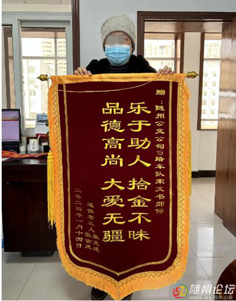 本帖最后由 自由如風(fēng) 于 2024-1-23 15:17 編輯 “太謝謝了,真是感謝宋師傅,幫我父母找回失物?!?月22日下午,張女士帶著一封感謝信和一面錦旗,走進了公交公司辦公室。臉上洋溢著感激之情,她說, ...
