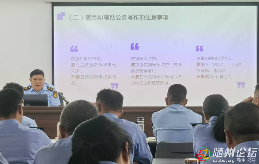 4月11日,隨縣交通運輸綜合執(zhí)法大隊集中開展《AI賦能新時代公務(wù)寫作》專題培訓(xùn),通過科技賦能推動執(zhí)法隊伍專業(yè)化建設(shè)。大隊機關(guān)全體人員及基層中隊業(yè)務(wù)骨干共40余人參與此次能力提升行動。 主講人結(jié)合典型案例 ...