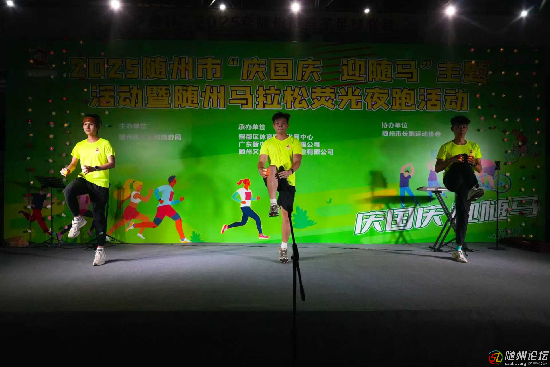 隨州論壇訊(全媒記者陳云 通訊員 劉安國(guó))10月4日晚,2025年“迎國(guó)慶 跑隨馬”熒光夜跑活動(dòng)舉行,400多名跑步愛(ài)好者頭戴發(fā)光發(fā)夾、身著螢光綠T恤變成“發(fā)光體”,在城區(qū)濱湖體育館歡樂(lè)開(kāi)跑,用躍動(dòng)的熒光點(diǎn)亮隨州夜 ...