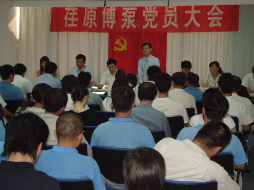 本次黨員大會由黨總支副書記姜作棟同志主持,他首先介紹了黨組織機(jī)構(gòu)的組成:張玉琴同志任黨總支書記,姜作棟同志任黨總支副書記,李正民同志、劉擁民同志、王興春同志分別任統(tǒng)戰(zhàn)委員、組織紀(jì)檢委員、文體宣傳委員。荏原博泵黨總支下設(shè)管理、生產(chǎn)、質(zhì)量和業(yè)務(wù)技術(shù)四個黨支部,管理黨支部書記由邱建剛同志擔(dān)任,生產(chǎn)黨支部書記由宋遵民同志擔(dān)任,質(zhì)量黨支部書記由郝圣同志擔(dān)任,業(yè)務(wù)技術(shù)黨支部書記由梁文運(yùn)同志擔(dān)任。各黨支部通過民主選舉選出了支部委員。在會上,黨總支書記張玉琴同志向全體黨員提出要求,一是加強(qiáng)學(xué)習(xí),提高素質(zhì);二是增強(qiáng)黨性,努力工作;三是加強(qiáng)領(lǐng)導(dǎo),發(fā)揮作用。著重強(qiáng)調(diào)了全體黨員不僅要有較高的政治素質(zhì),更要有很強(qiáng)的業(yè)務(wù)能力和技術(shù)水平。要一如既往的發(fā)揮黨員的先鋒模范作用,以企業(yè)經(jīng)濟(jì)發(fā)展為中心任務(wù),身先士卒,帶頭努力干好工作,在營造團(tuán)結(jié)和諧的工作氛圍中發(fā)揮作用。公司總經(jīng)理孫龍平同志在黨員大會上代表行政領(lǐng)導(dǎo)班子作了重要發(fā)言,指出目前公司正處在打基礎(chǔ)的關(guān)鍵時期,邊建設(shè)、邊生產(chǎn)、邊供貨、邊發(fā)展。黨組織要充分發(fā)揮政治核心作用,領(lǐng)導(dǎo)工會、共青團(tuán)等群眾組織,團(tuán)結(jié)凝聚廣大員工,貫徹黨的方針政策,促進(jìn)企業(yè)健康發(fā)展。