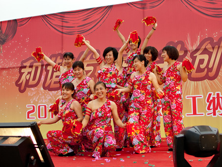 舞蹈《開(kāi)門(mén)紅》寄托著荏原博泵員工對(duì)公司發(fā)展前景的美好期盼,展示了公司女職工的風(fēng)采。20多名復(fù)員軍人用一首《咱當(dāng)兵的人》抒發(fā)了他們保家衛(wèi)國(guó)、貢獻(xiàn)企業(yè)的豪情與壯志;研發(fā)部、技術(shù)部員工帶來(lái)的歌曲《跳起來(lái)》,展示了年輕人的青春與活力;質(zhì)量保證部員工在部長(zhǎng)岳東海帶領(lǐng)下,演唱了歌曲《相親相愛(ài)一家人》,演繹著荏原博泵大家庭的親情、友情。友情樂(lè)隊(duì)帶來(lái)的動(dòng)感十足的歌曲,更是將晚會(huì)的氣氛烘托到高潮。