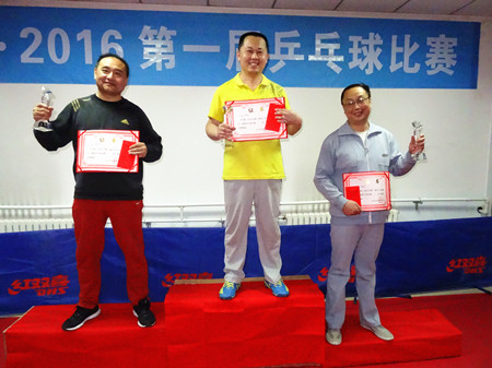 經(jīng)過(guò)緊張、激烈的角逐,獲得男子團(tuán)體比賽的冠軍隊(duì)是:機(jī)加工二隊(duì);亞軍:質(zhì)量采購(gòu)隊(duì);季軍:管理隊(duì)。獲得男子單打前六名的隊(duì)員是:冠軍:李金勇;亞軍:張?chǎng)?;季軍:劉增忠;第四名:丁業(yè)旋;第五名:趙汝慶;第六名:聶紅兵。